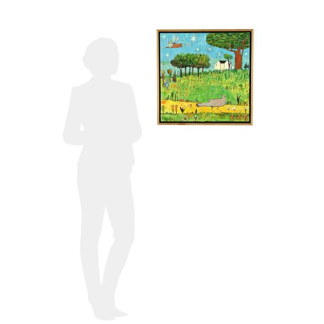 Acrylic on canvas, 2011, signed and dated at lower left, presented in a light wood floater frame.