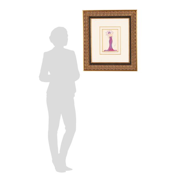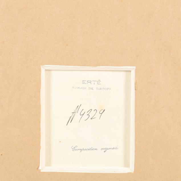 Gouache on paper, signed at lower right, numbered and stamped to verso "Erté / Romain de Tirtoff / Composition Originale," framed under glass.