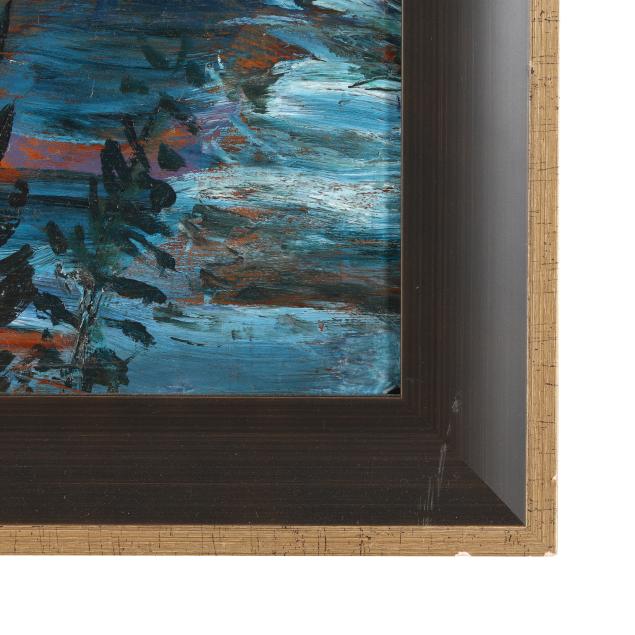 Oil on panel, circa 1935, signed at lower left, inscribed, retaining exhibition and conservation labels to the verso, presented in a gilt frame.