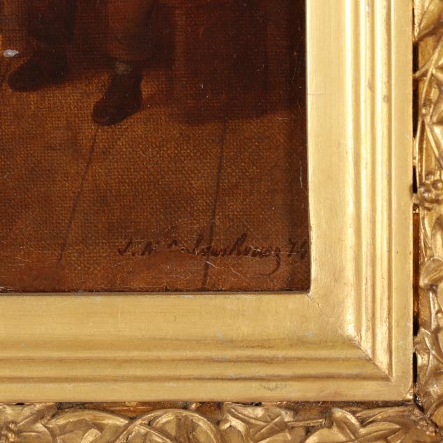 Private Collection from an Equestrian Farm, Moore County, North Carolina Johann Mongels Culverhouse was a Dutch-born genre painter known for atmospheric candlelit and nocturnal scenes influenced by seventeenth-century Dutch masters. Born in Rotterdam, he worked in both the Netherlands and the United States, exhibiting at major institutions including the Paris Salons, the National Academy of Design, the Boston Athenaeum, and the Pennsylvania Academy of the Fine Arts. His paintings are in the collections of the Metropolitan Museum of Art, the Brooklyn Museum, and The High Museum of Art.