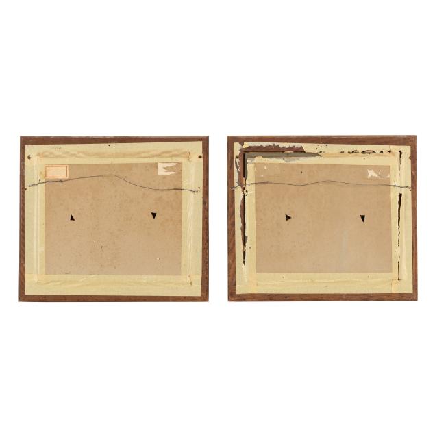 Each an oil on canvas (lined), not signed, one retaining vintage label to the verso, with apocryphal attribution, presented in giltwood frames.
