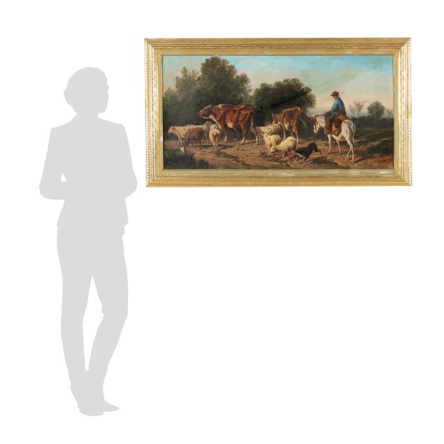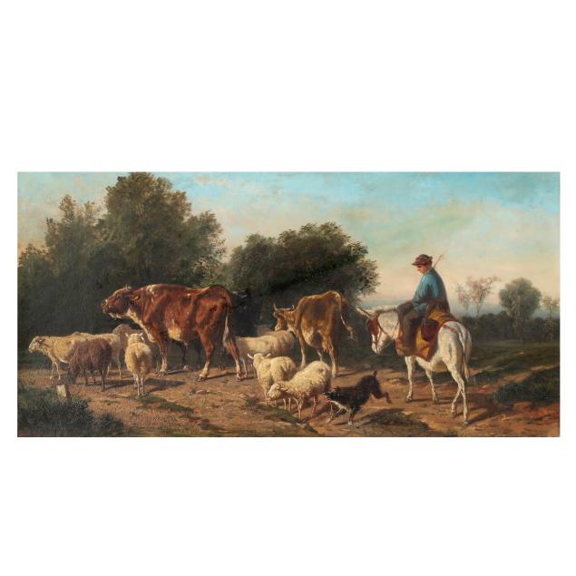 Henry Collins Bispham (American, 1841-1882), Shepherd with Mule, Cattle, and Sheep