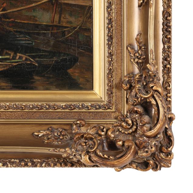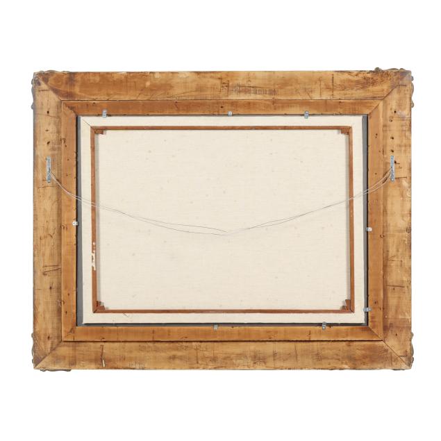Oil on canvas (lined), signed at lower left, presented in an ornate giltwood frame.