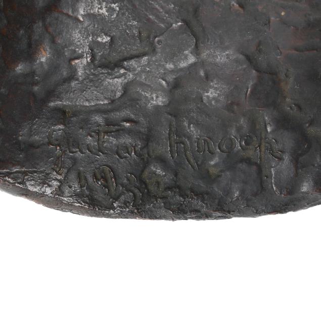 Born in Moscow, Russia from parents of Dutch origin, Marguerite Guitou Knoop and family settled in Paris in 1927. Her interest in portrait sculpture was influenced by French sculptor Antoine Bourdelle (1861-1929), as well as her studies with sculptor Charles Despiau (1874-1946) at L'Académie de la Grande Chaumière in Montparnasse. Early works such as this example were created in clay and cast in bronze.