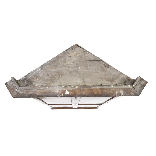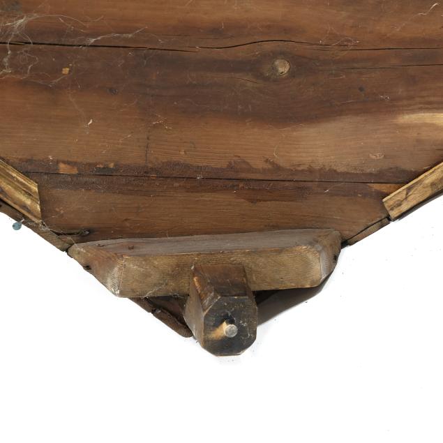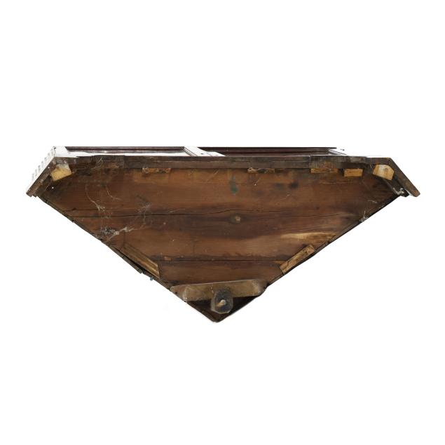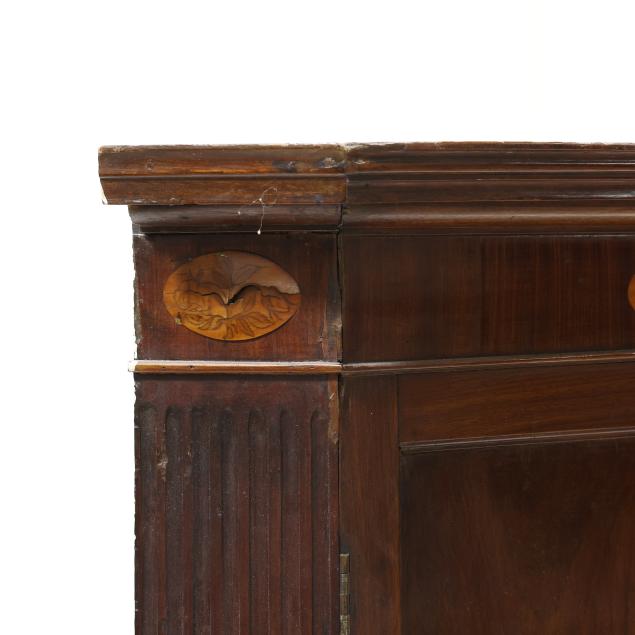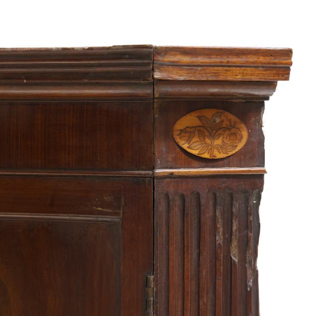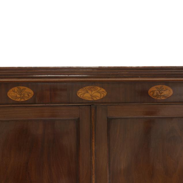 From the Collection of Carol Hipps, Raleigh, North Carolina Veneer buckling and lifting to the inlaid paterae; shrinkage cracks to painted interior frieze; later dish rails; later paint; hinged edge at waist board was likely once a larger panel for serving purposes; old but later hinges; later rear foot; front feet tipped the lower four inches.