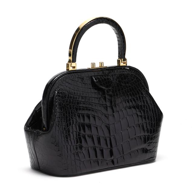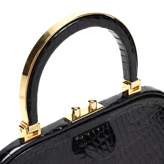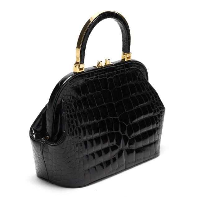 Black Alligator Frame Handbag, Judith Leiber