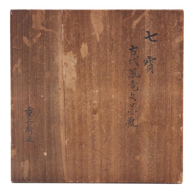 nashiji ground, the shoulder and neck with bands of stylized blossoms and scrolling ornament, Ando workshop mark to the underside, presented together with an inscribed