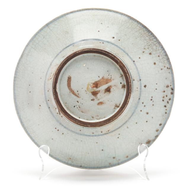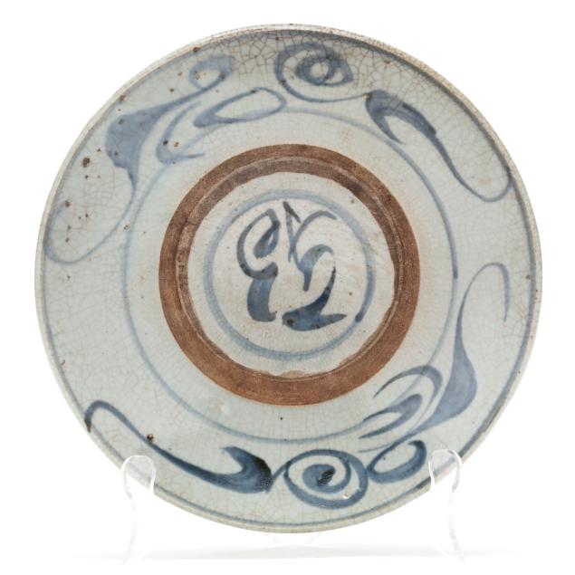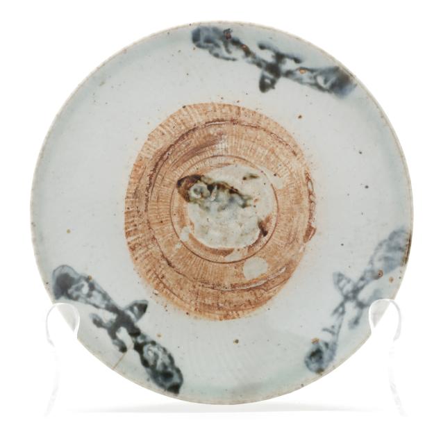 Ming Dynasty (1368-1644), a group of three shallow porcelain dishes decorated in provincial style with a charmingly rustic and spontaneous aesthetic.