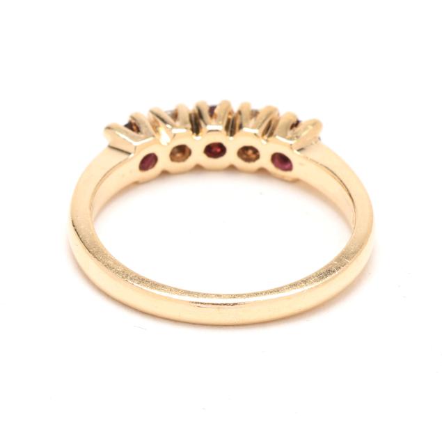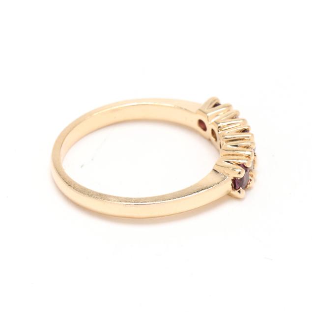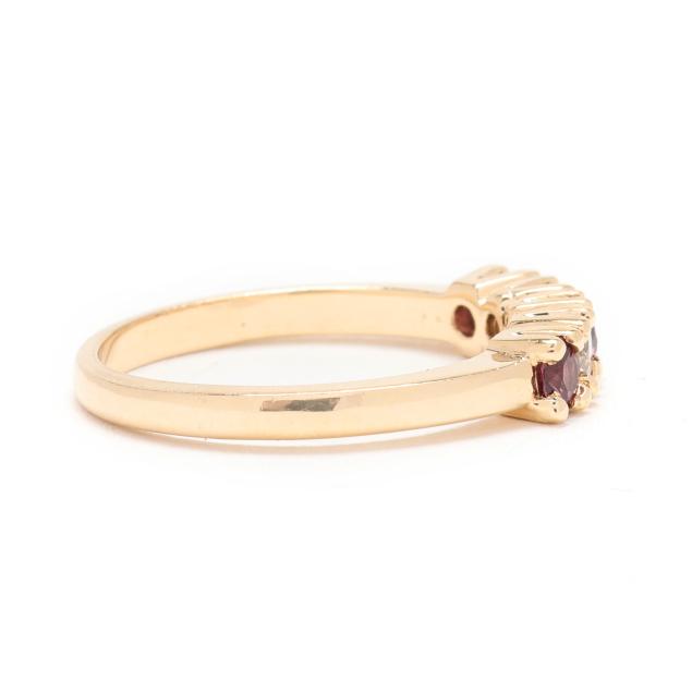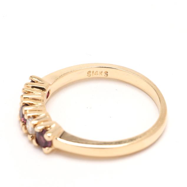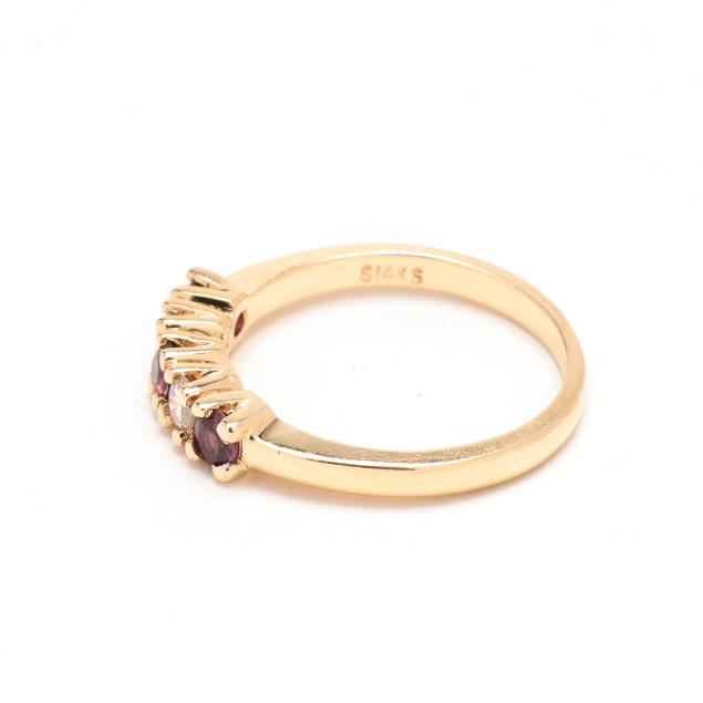 Set with alternating round cut garnets (3mm) and full cut round diamonds (2.75mm), stamped S14KS.