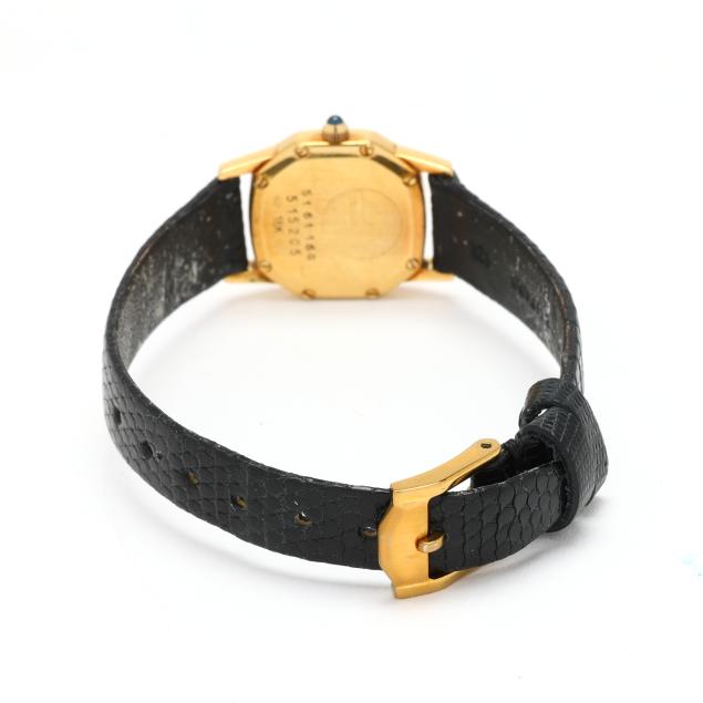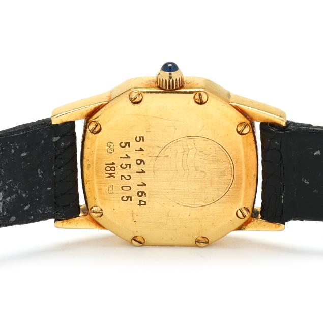 Quartz, ETA 976.001, reference number 51.61.164, serial number 515205, the octagonal gold case with bezel set with single cut diamond melee, the signed gold-tone dial with dot hour markers and gold-tone Dauphine hands, the black lizard strap completed with a gold-tone buckle, the caseback signed, numbered, and with Swiss hallmarks for 18KT.