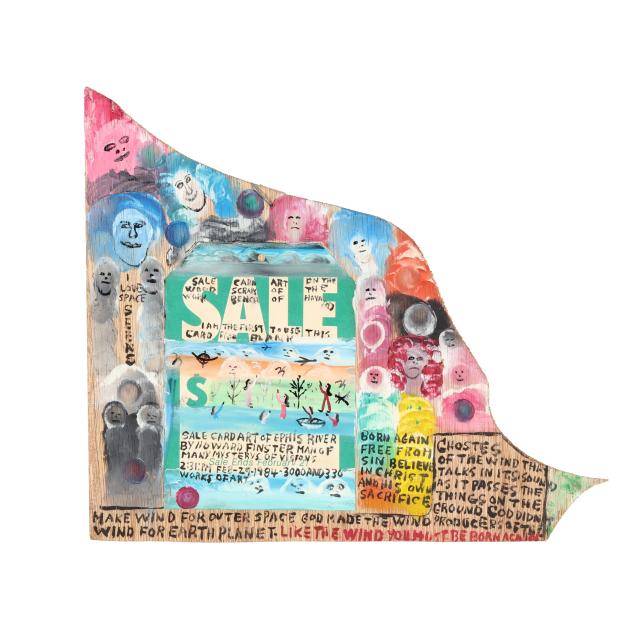 Private Collection, Chicago and North Carolina One of America’s most recognized outsider artists, Finster was a preacher for 45 years until 1976, when he experienced a vision and afterward began painting, in bright colors, religious art as well as everyday objects such as Coke bottles. The Rev. Howard Finster was born Dec. 2, 1916, in Valley Head, Alabama, and died Oct. 22, 2001, in Summerville, GA. He worked up album covers for R.E.M., Talking Heads and other bands, appeared on “The Tonight Show Starring Johnny Carson,” and welcomed a steady stream of people (from regular folks to the famous, such as artist Keith Haring) who made the pilgrimage to his roadside attraction/folk art environment, Paradise Garden.