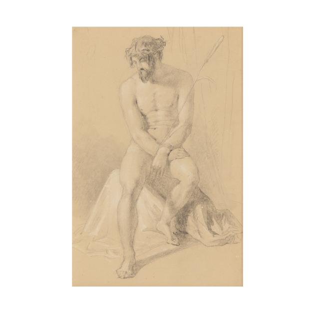 Vintage Drawing of Christ Seated and Crowned in Thorns