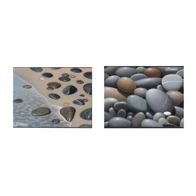 Oil on canvas board, circa 2002-2003, both signed, presented in matching black frames.