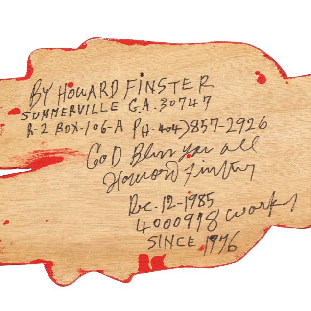 Private Collection, Chicago and North Carolina One of America’s most recognized outsider artists, Finster was a preacher for 45 years until 1976, when he experienced a vision and afterward began painting, in bright colors, religious art as well as everyday objects such as Coke bottles. The Rev. Howard Finster was born Dec. 2, 1916, in Valley Head, Alabama, and died Oct. 22, 2001, in Summerville, GA. He worked up album covers for R.E.M., Talking Heads and other bands, appeared on “The Tonight Show Starring Johnny Carson,” and welcomed a steady stream of people (from regular folks to the famous, such as artist Keith Haring) who made the pilgrimage to his roadside attraction/folk art environment, Paradise Garden.
