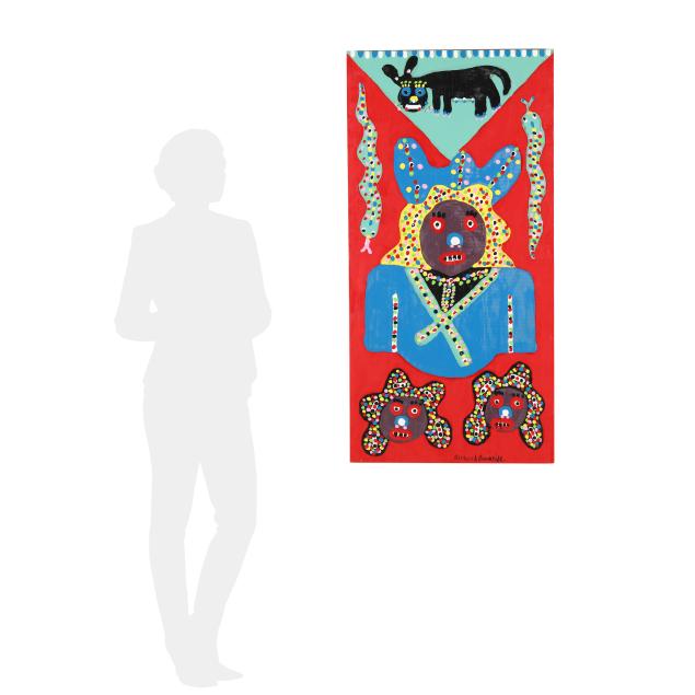 Polychrome paint on panel, signed at the lower edge, unframed.