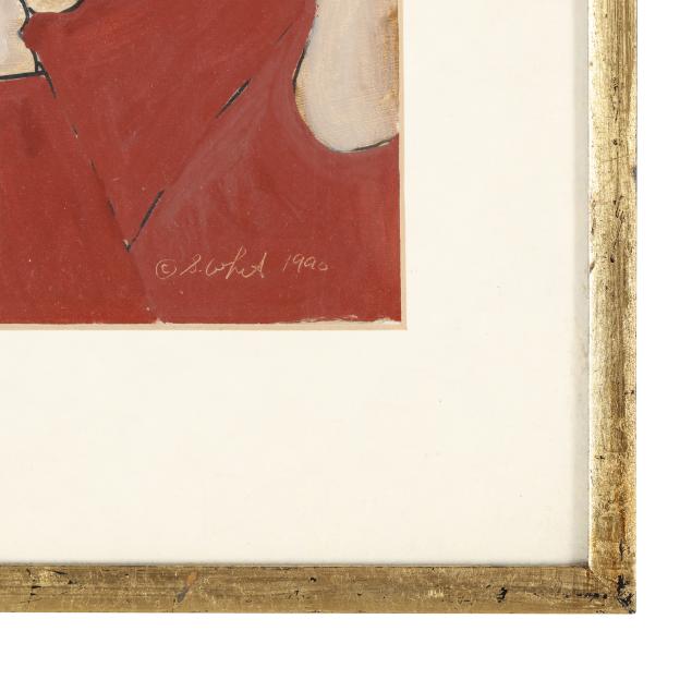 Oil on paper, 1990, signed and dated at lower right, matted and framed below glass.