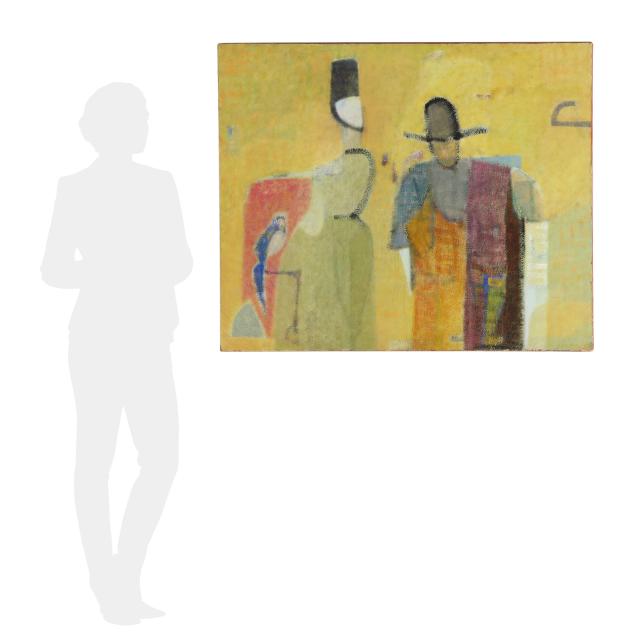 Stable craquelure; some foxing to canvas verso; light surface grime.