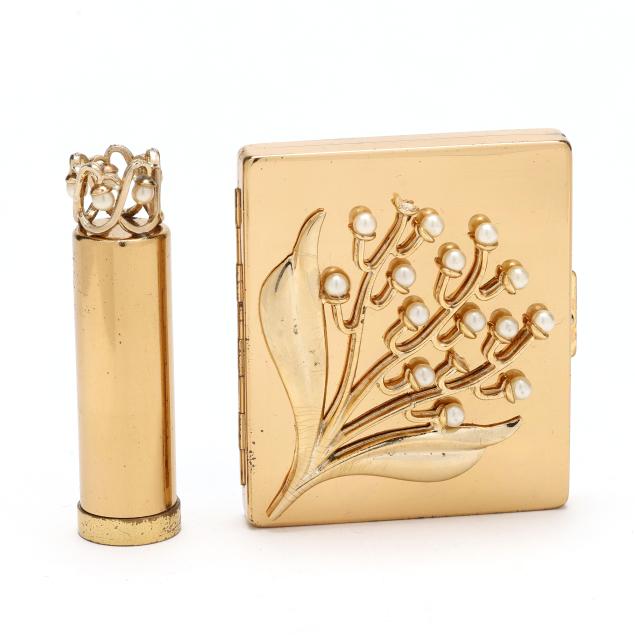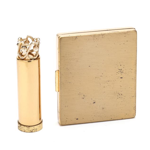 Vintage Gold-Tone Compact and Lipstick Set, Paul Flato