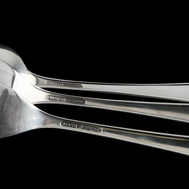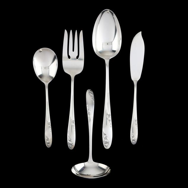 (41) pieces to include: (9) dinner knives (8 7/8 in.); (9) dinner forks (7 3/8 in.); (9) salad forks (6 1/2 in.); (8) teaspoons (6 in.); (2) tablespoons; a cold meat fork; a gravy ladle; a sugar spoon; and a master butter spreader.