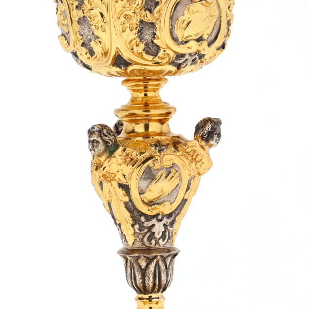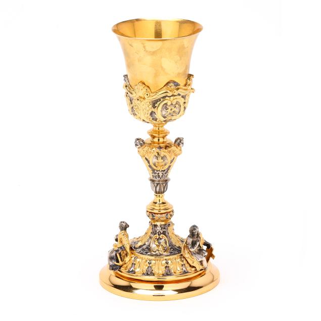From a Private Collector, Davie County, North Carolina Good estate condition, some losses and wear to the gilding, the baseplate is copper and has not been weighed with the chalice.