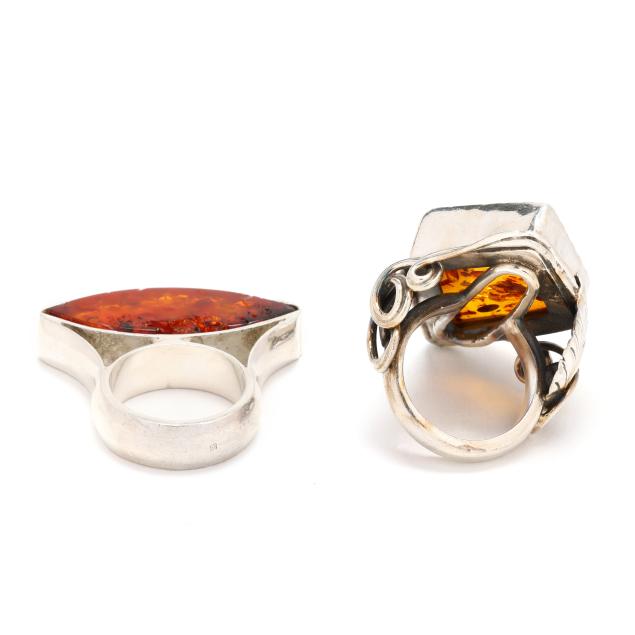 Two Silver and Amber Rings