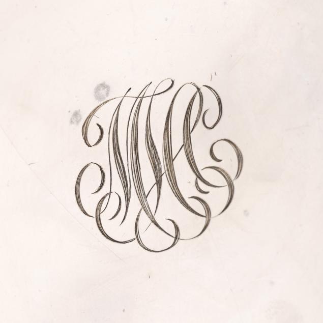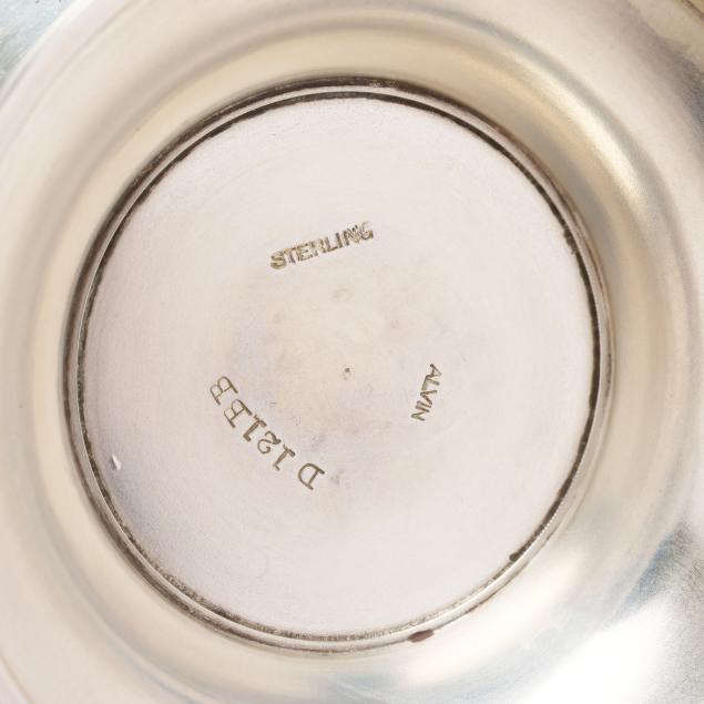 The first, mark of Alvin, a footed bowl with "MHC" monogram to the center (2 1/2 x 5 1/2 in. dia.); the second, mark of Frank Smith, pattern number 194, a petal form bowl with stylized "OC monogram to the well (6 in. dia.).