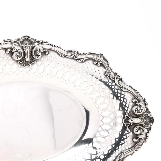 New York, early 20th century, pattern number D4826, ovoid form featuring a reticulated flange and rocaille scrolled shell border, not monogrammed.