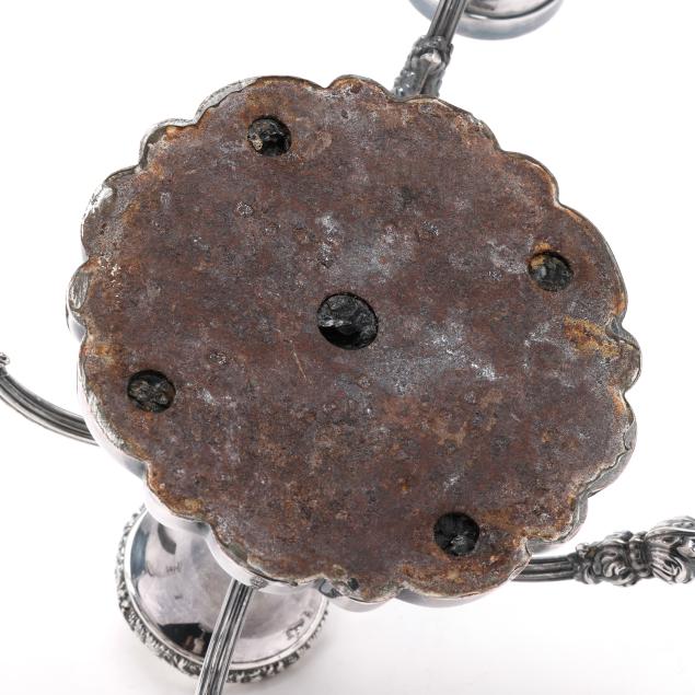 The Estate of Ruth & Milton Barber, Durham, North Carolina Wear and rubbing to the plating, warping to the candle arms; surface scratches to the bowl and glass.