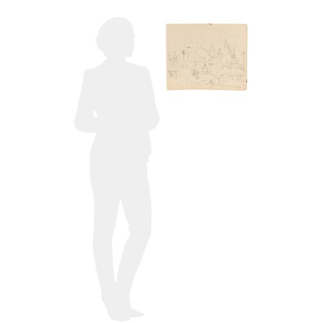 Light toning to sheet; ink stain to edge of sheet at lower right; watercolor stain to top center of sheet.