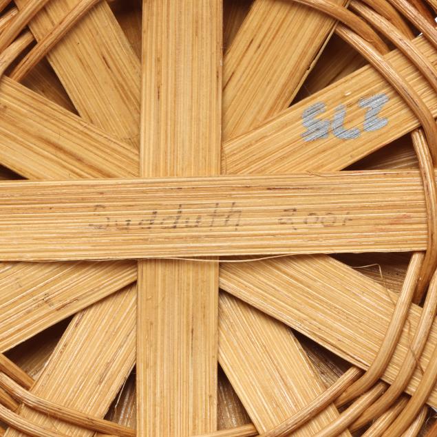 Billie Ruth Sudduth is a widely acclaimed basket maker who lives in the mountains of North Carolina. A native of Sewanee, Tennessee, she was raised in Birmingham, Alabama. Her work is influenced by the traditions of North Carolina basketry techniques and materials, mathematical theory like the Fibonacci sequence, along with rich colors inspired by her sojourn in the Mohave Desert. Her baskets are typically twill work and cat's head forms, and are all done without any molds. The dyes that Sudduth uses are natural iron-oxide, henna, and madder, and she prefers to use European Cut reed for materials.