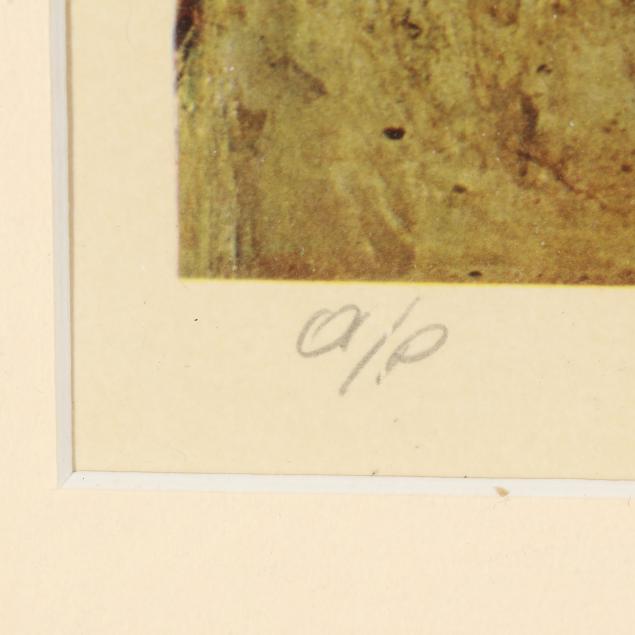 Collotype in colors, pencil signed and inscribed as an artist proof to lower margin, separate from an edition of 250, matted and framed below glass.