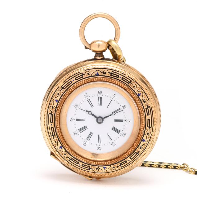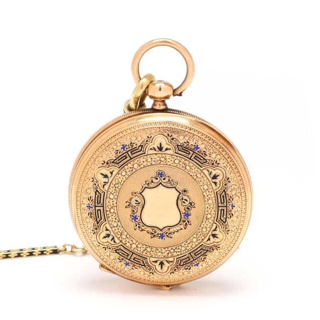 gold-and-enamel-open-face-pocket-watch-and-chain-h-montandon