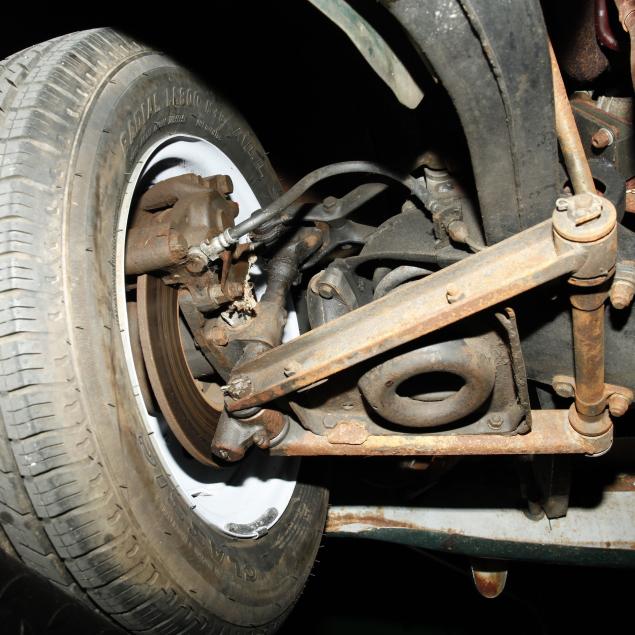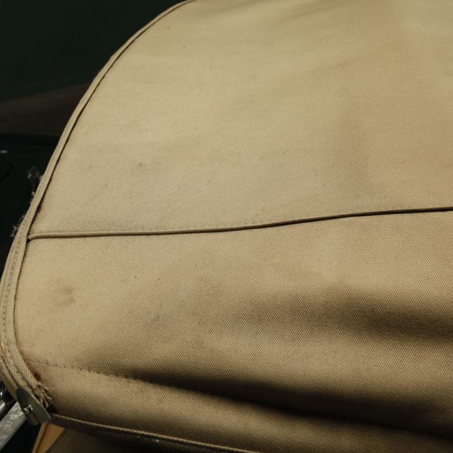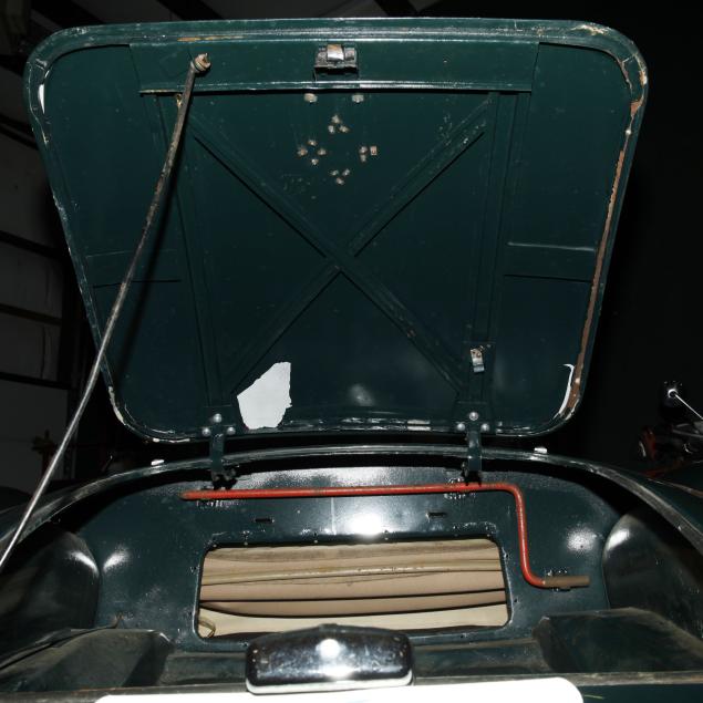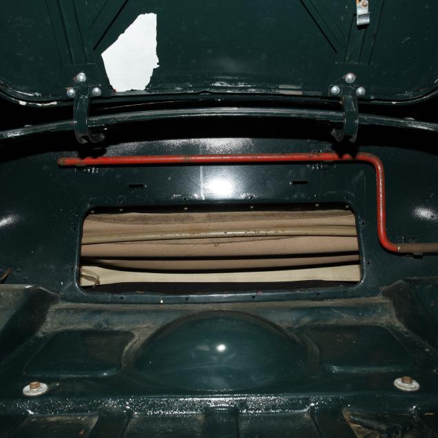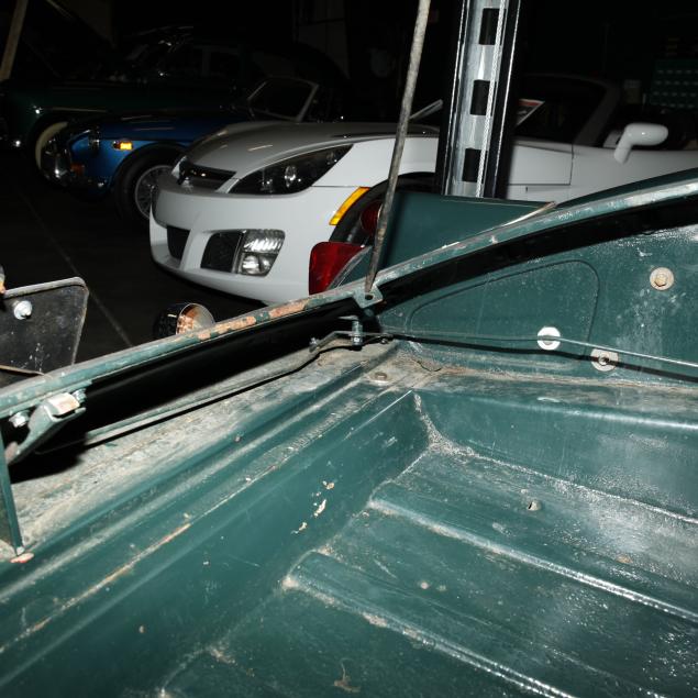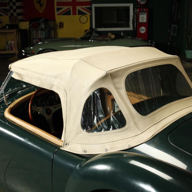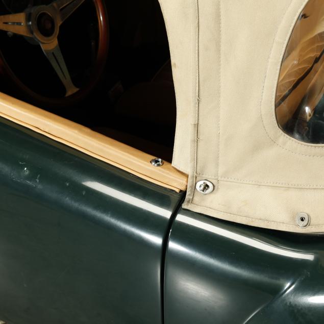 Paint has imperfections, but likely will polish out; canvas top with minor stains; fender and wing beading is faded and discolored, can be easily replaced; left rear brake cylinder leaking; minor surface rust to exposed metal on chassis, and engine bay; wheels recently repainted, and tires balanced with tubes installed; no other apparent concerns.
