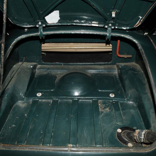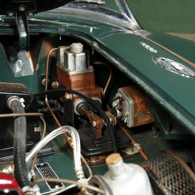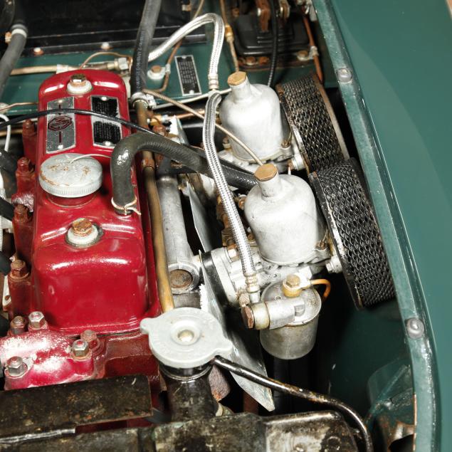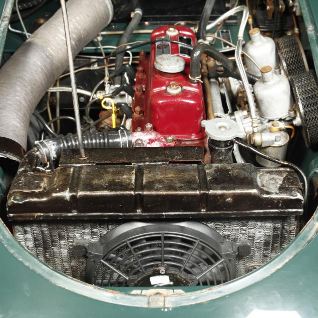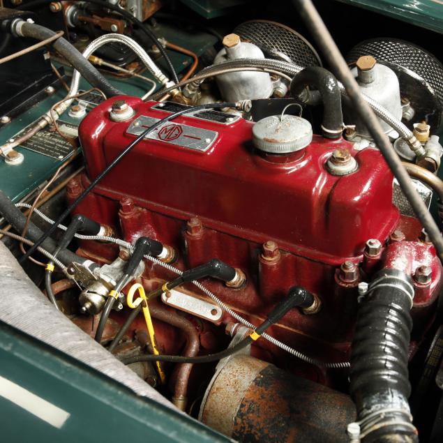 With a 1598cc four-cylinder engine, and a four-speed manual transmission. A restoration was completed in 2011. A new wiring harness was installed, the engine was rebuilt with a later MGB 1800cc head, an auxiliary electric fan was installed, and the rear end was replaced with a 3.9 ratio unit from an MGB. A switch for the auxiliary fan and fuel pump installed.