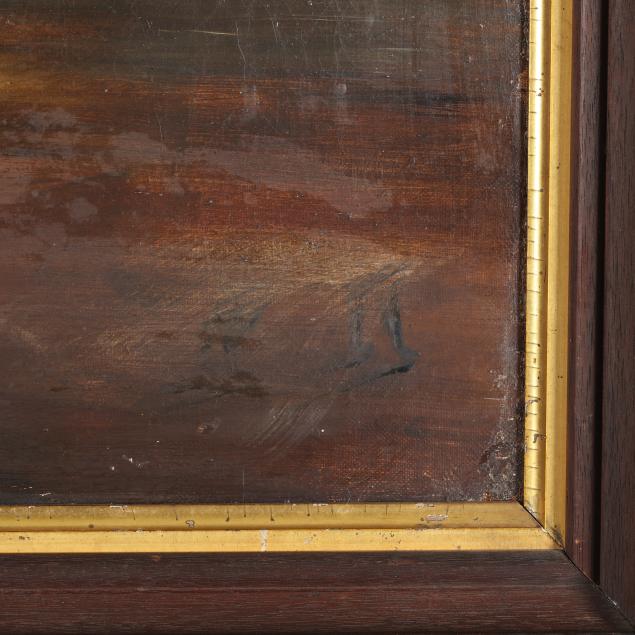 The painting has been lined, with age cracking to the paint, significant retouching.