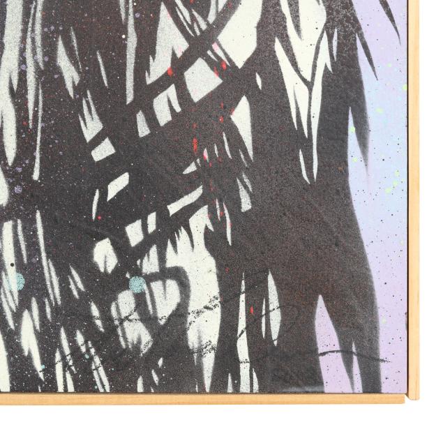 Private Collection, Raleigh, North Carolina Mathew Curran is an LA based artist who has developed a unique and personal style spanning multiple mediums. Drawing from his international roots and early influences in American teen culture, Curran's work focuses primarily on stencil art that captures the energy and vibrancy of street life. Born in England in 1979, Curran came to the United States as a teenager and studied fine art and graphic design at UNC Greensboro. Curran's post-college work has been defined by a style based on forceful lines and subtle uses of background color, allowing him to duplicate the intensity of street life in his depictions of distorted figures and industrial objects. He has been commissioned to create numerous murals for installations, from Art Basel in Miami to the Container Yard in Los Angeles to Duke University in Durham and CAM in Raleigh.
