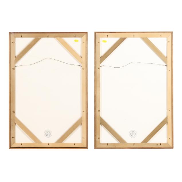 Each a large-format Polaroid, 1996, one signed "William Wegman for DIFFA, '96" lower right, unique works, presented in uniform framing.