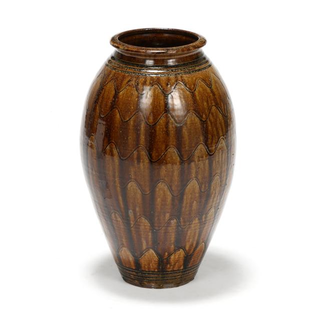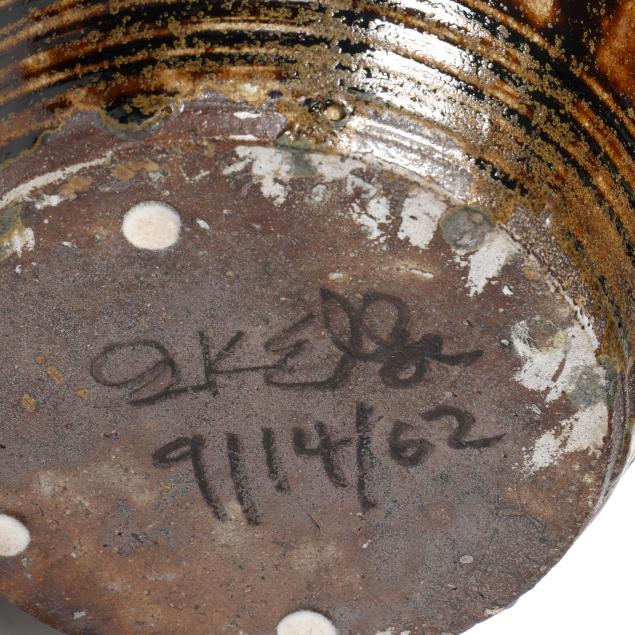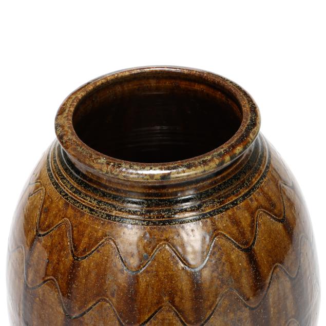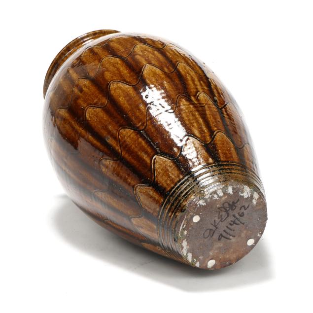 Private Collection, Raleigh, North Carolina Kim Ellington is a native of Hickory, North Carolina. After learning the pottery craft at Haywood Community College, he returned to the Hickory area and opened his first shop. His interest and research in the local Catawba Valley pottery tradition led to an educational mentorship with Burlon Craig, learning how to source and use local clay, firing techniques in a large groundhog kiln, and making the forms and glazes that distinguish Catawba Valley Pottery. Kim moved his home and shop to Vale in 1987.