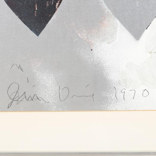 Color screenprint on textured paper, 1970, printed signature and date within the matrix, with printed exhibition details at right, framed.