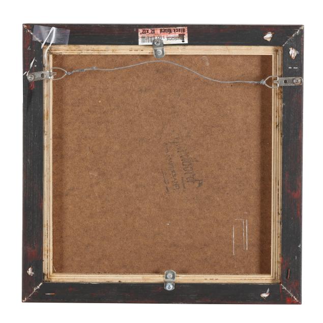 Oil on hardboard, signed at lower right, presented in a floater frame.