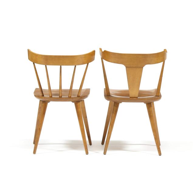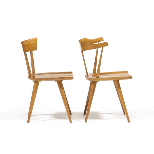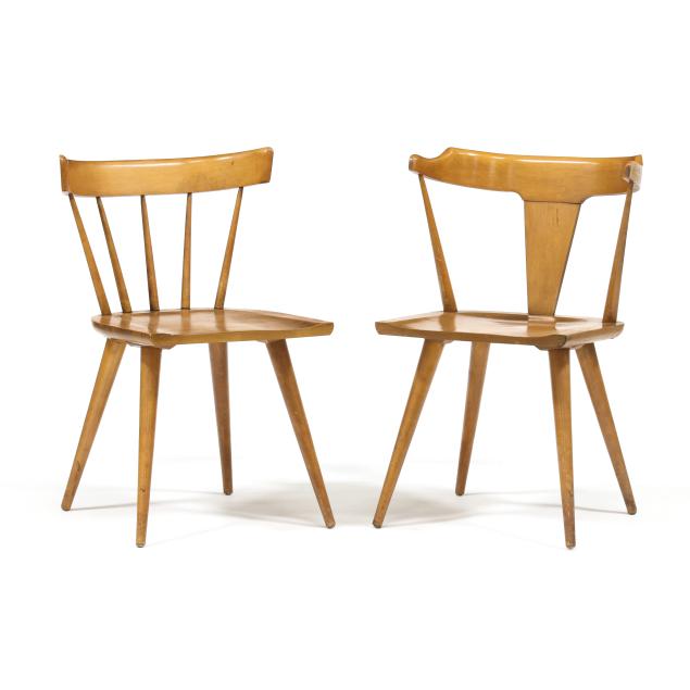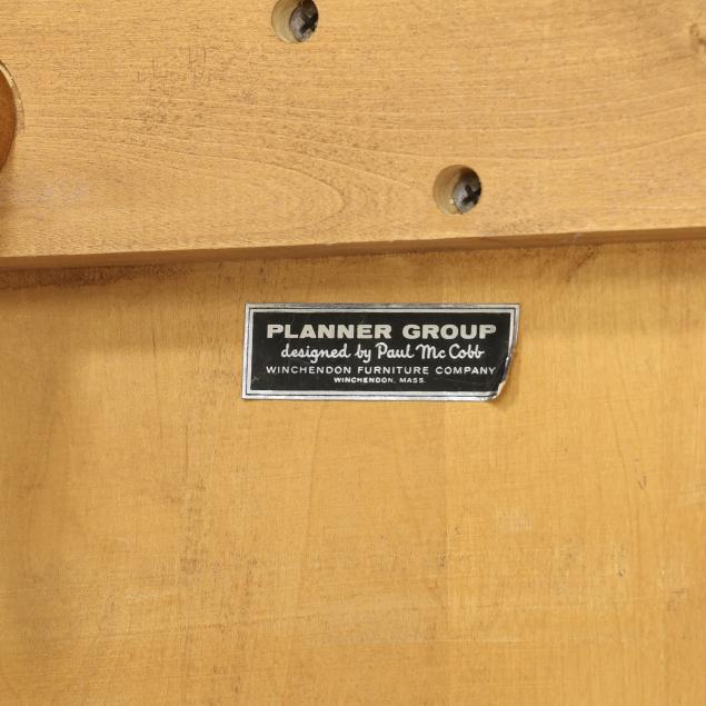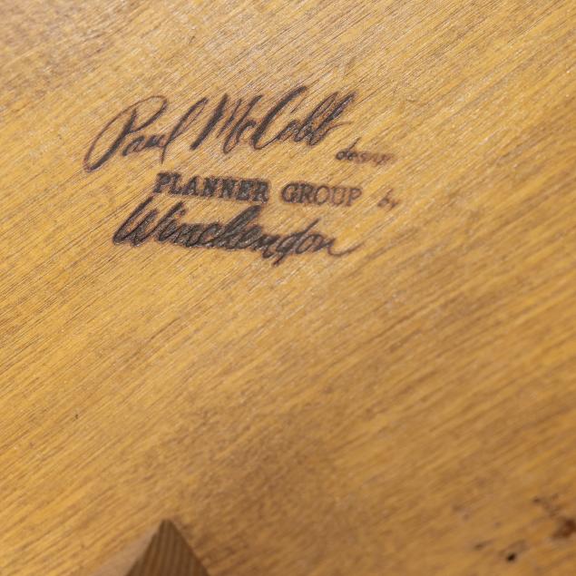 Circa 1950, including (6) Paul McCobb dining chairs, unmarked (29.5 x 20 x 17 in.); a Paul McCobb coffee table, labeled Planner Group (10 x 18 x 36 in.); and a Danish drop leaf dining table, unmarked (29 x 22 x 70 in., each leaf 10 in.).