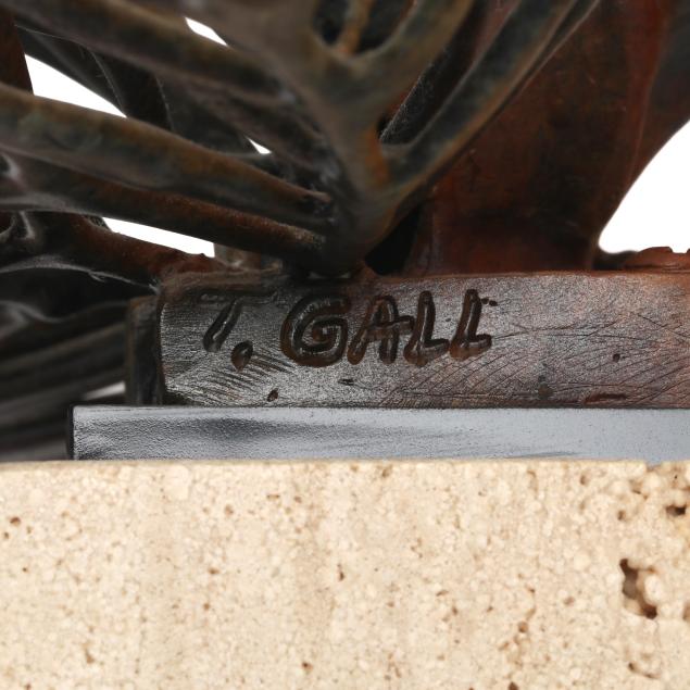 Theodore T. Gall began his career in the arts in the mid-sixties as an animator for teaching films and continued to broaden his skills as a graphic designer. Gall has worked in metal since his early days as an artist. Although his work has not been limited to the human form, it has been his primary focus throughout his career. His compelling figures are most often placed in thought-provoking situations. He studied at the Art Institute of Chicago and the American Academy of Art and has shared his expertise with students at the Clay People in Chicago, The Northshore Art League in Winnetka, Illinois, and the Ojai Art Center in Ojai, California. Gall has exhibited and garnered awards throughout the country and is acquiring a burgeoning international clientele.