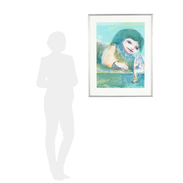 Mixed media on paper, signed at lower left, matted and framed under glass.
