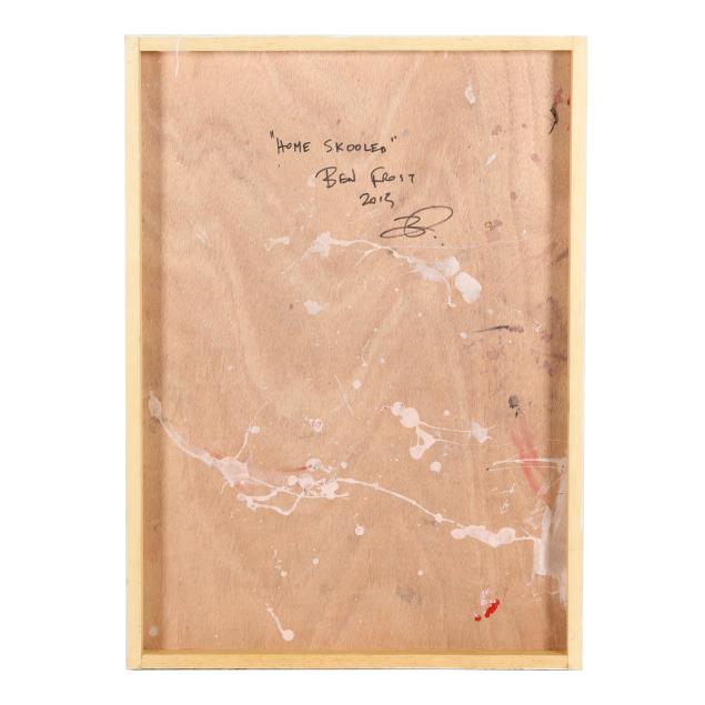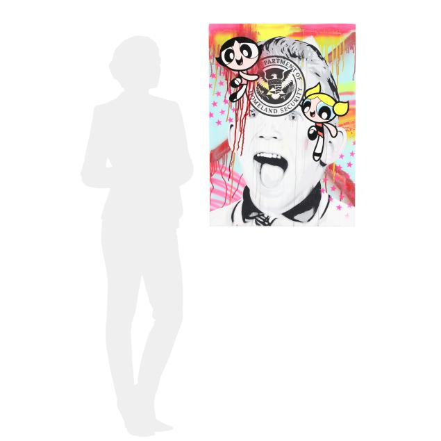 This painting was featured in "Company of Thieves," a landmark joint exhibition between Ben Frost and DENIAL held at Detroit's Inner State Gallery in 2013. The exhibition brought together two of contemporary art's most provocative voices in a bold exploration of appropriation, presenting confronting and unflinching re-imaginings of a society in cultural and political free fall.
