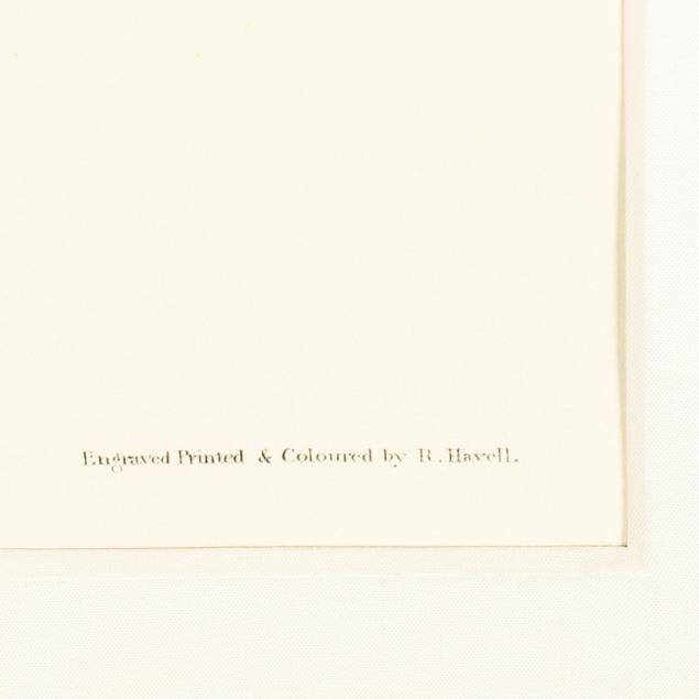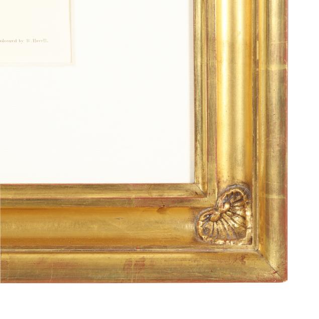 Offset lithograph in colors, presented in a giltwood frame with shell corners below glass.