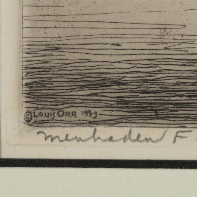 Etching, pencil signed and titled, from Orr's series of North Carolina landmarks completed between 1939-1952, matted and framed.