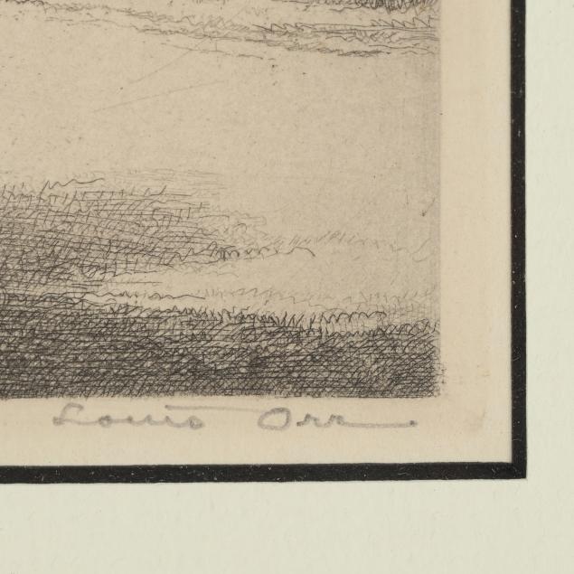 Private Collection, Raleigh, North Carolina Louis Orr is best known for these remarkably detailed and highly collectible etchings that illustrate historic landmarks throughout North Carolina. Born in Connecticut and spending much of his formative years in Paris, people fervently began collecting Orr’s work in both countries in the early 20th century. Orr was the first American artist to have work in the permanent collection of the Louvre Museum, and his were also the first etchings to ever join the Louvre’s collection.