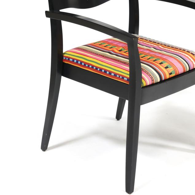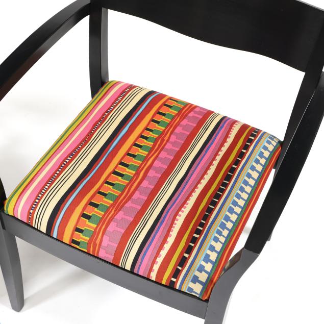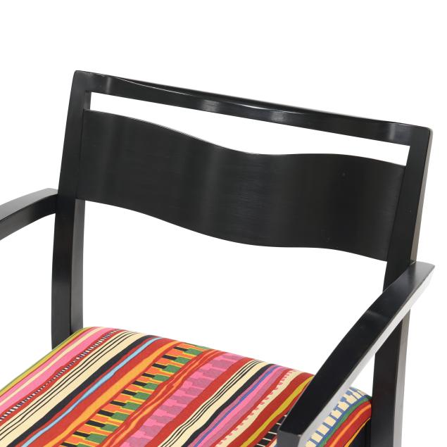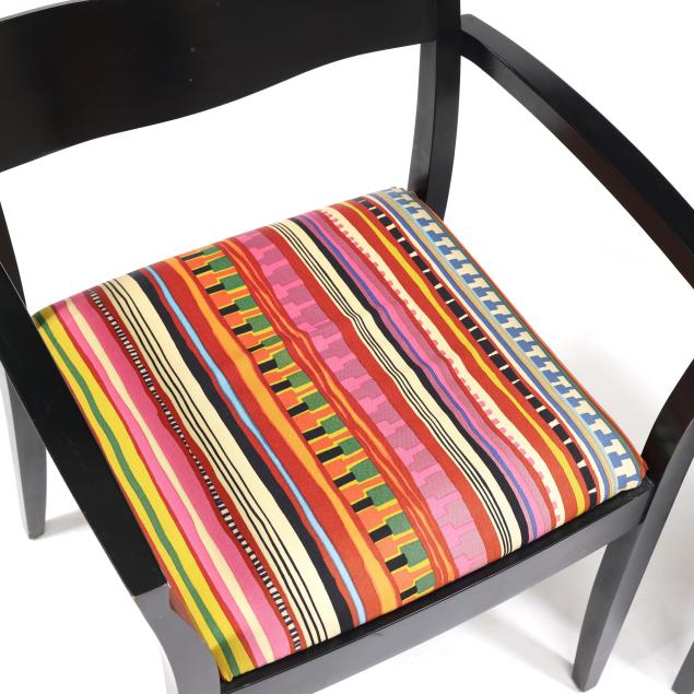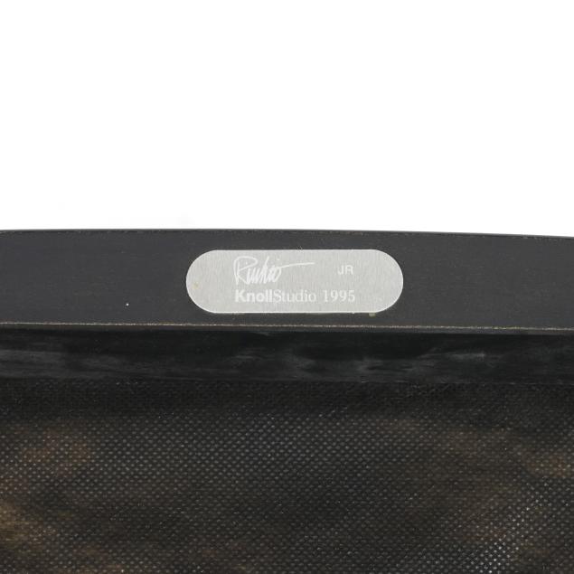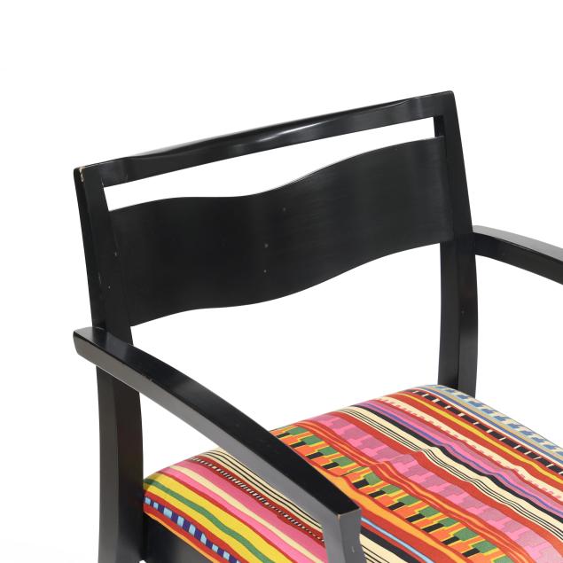 Knoll Studios, 1995, black lacquered wood frames, printed upholstered seats, labeled.