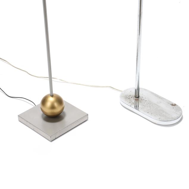 From the Estate of the late Thayer Coggin and Doris "Dot" Royals Coggin, High Point, North Carolina Both working at time of evaluation; Robert Sonneman lamp with some surface marks to base; chrome lamp with some rust spotting to base, some looseness to joint of light shade to stem.