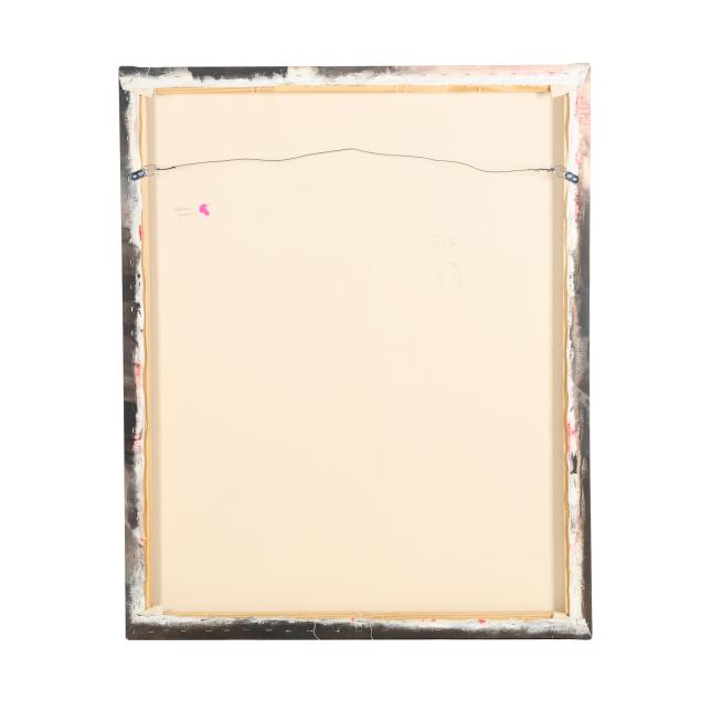 Mixed media on canvas, signed at the lower right, retaining label to verso, gallery-wrapped canvas.